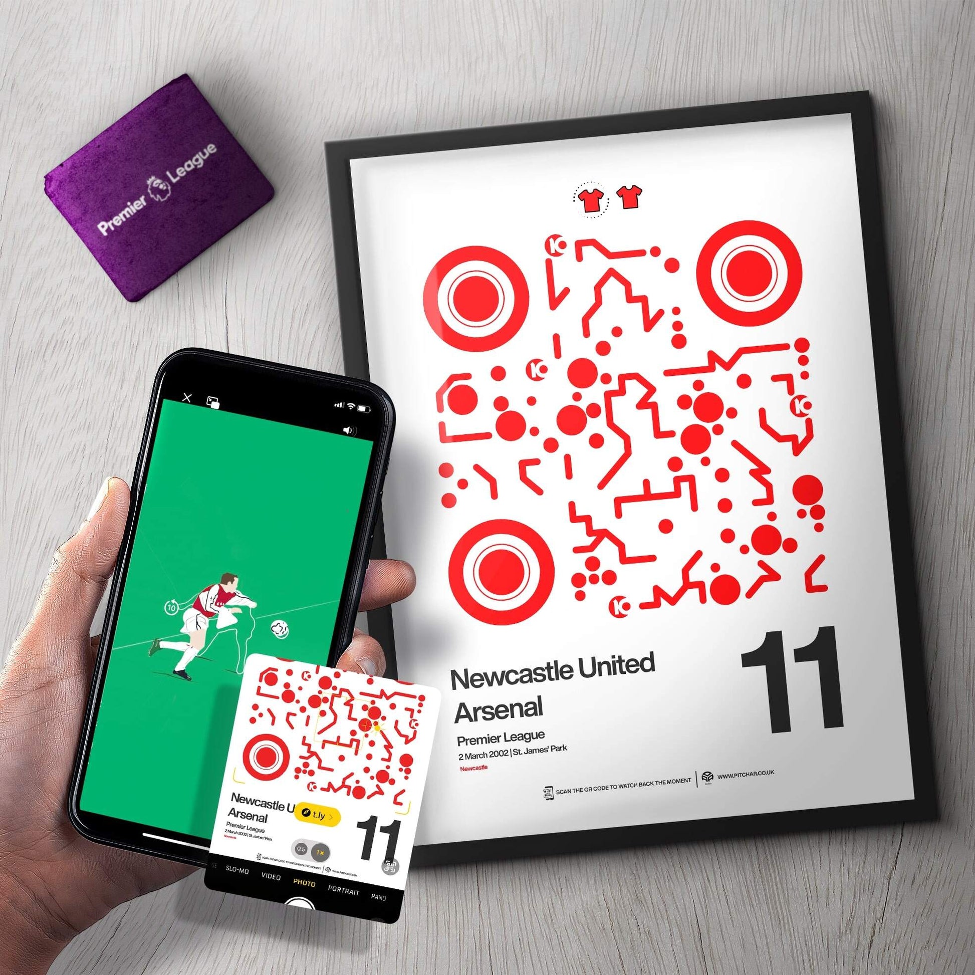 Arsenal poster with 20% Summer sale. Scan the QR code to watch a video replay of this goal. 14-day hassle-free returns. 100% Satisfaction guarantee. 5/5 highly rated. A4, A3, A2, A1, A0 available. Football Art Gift Boyfriend, Dad, Sister +