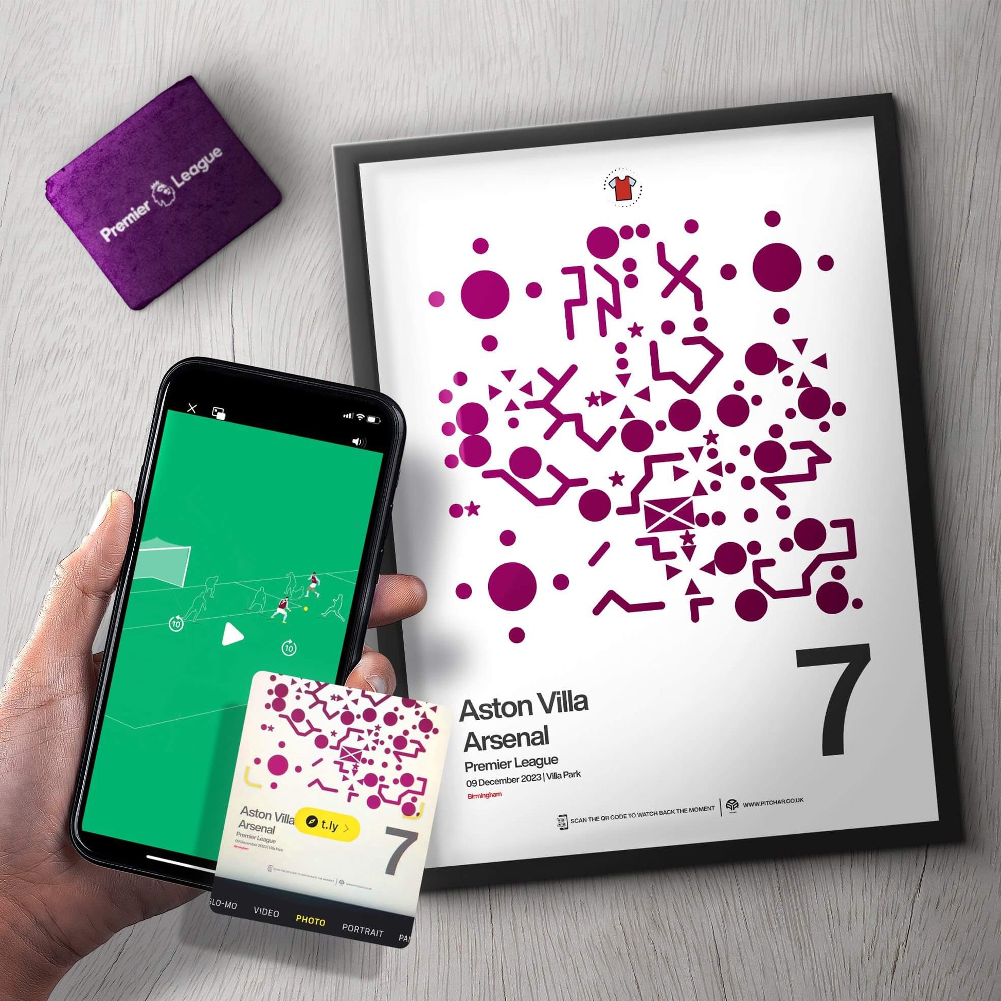 Aston Villa poster with 20% Summer sale. Scan the QR code to watch a video replay of this goal. 14-day hassle-free returns. 100% Satisfaction guarantee. 5/5 highly rated. A4, A3, A2, A1, A0 available. Football Art Gift Boyfriend, Dad, Sister +