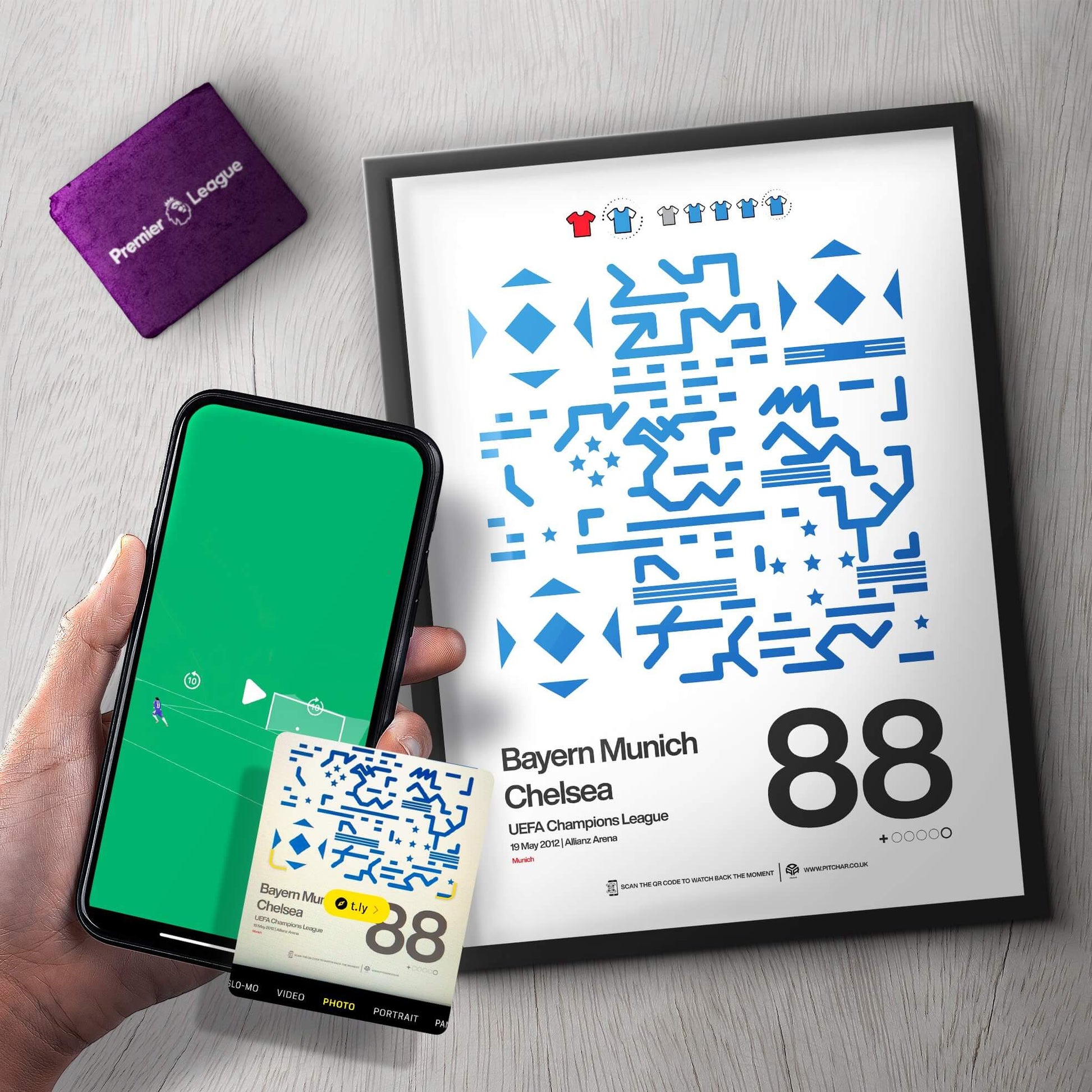 Scan this Chelsea artistic QR code to watch back an interactive video animation of this moment on 19/05/12 - Drogba (88’ + PK AET)