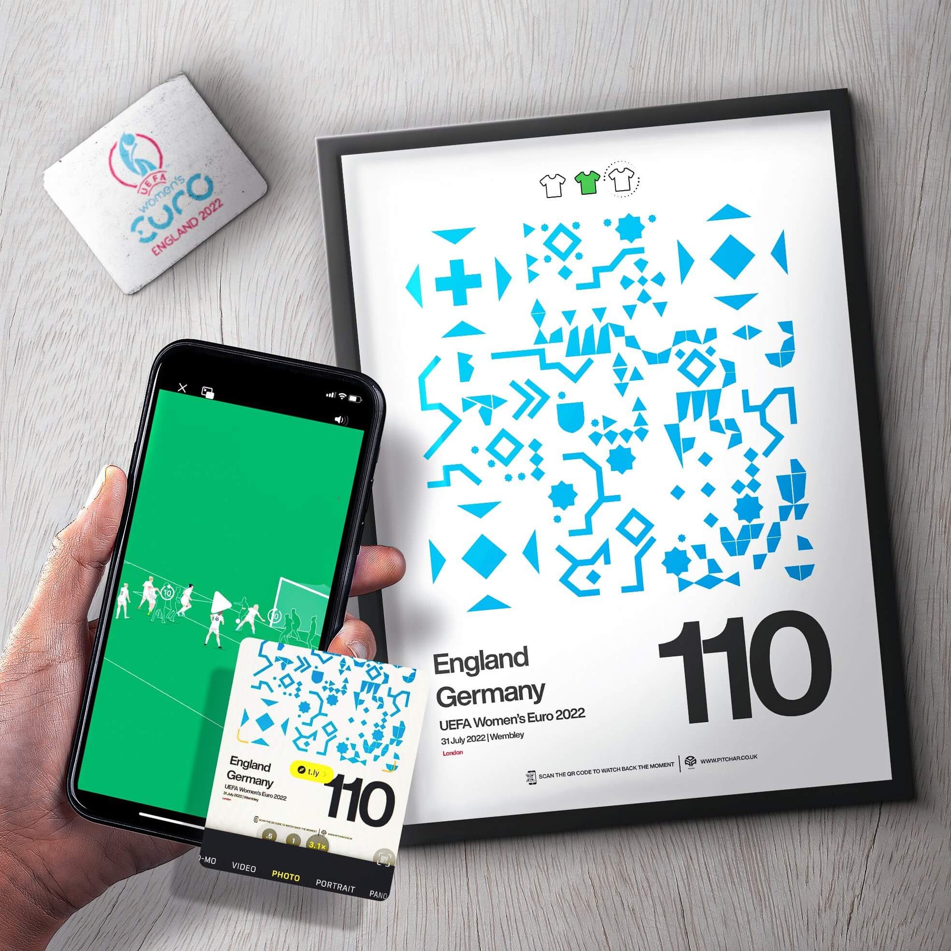 - The kit icon(s) at the top of your poster reflect the game's final score, with the circled icon(s) highlighting the goal(s) that will play in the animated video once the artistic QR code has been scanned.