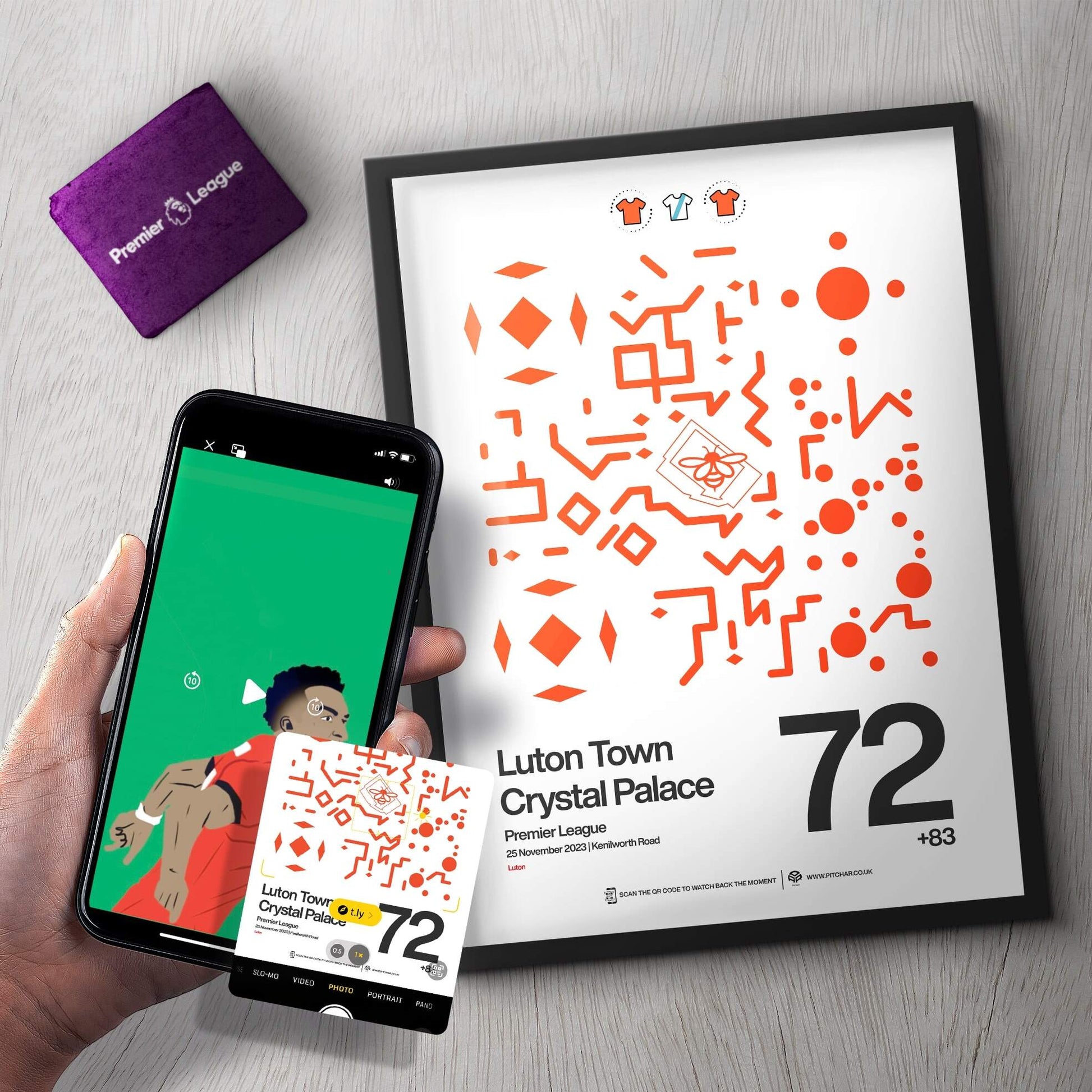 Luton poster with 20% Summer sale. Scan the QR code to watch a video replay of this goal. 14-day hassle-free returns. 100% Satisfaction guarantee. 5/5 highly rated. A4, A3, A2, A1, A0 available. Football Art Gift Boyfriend, Dad, Sister +