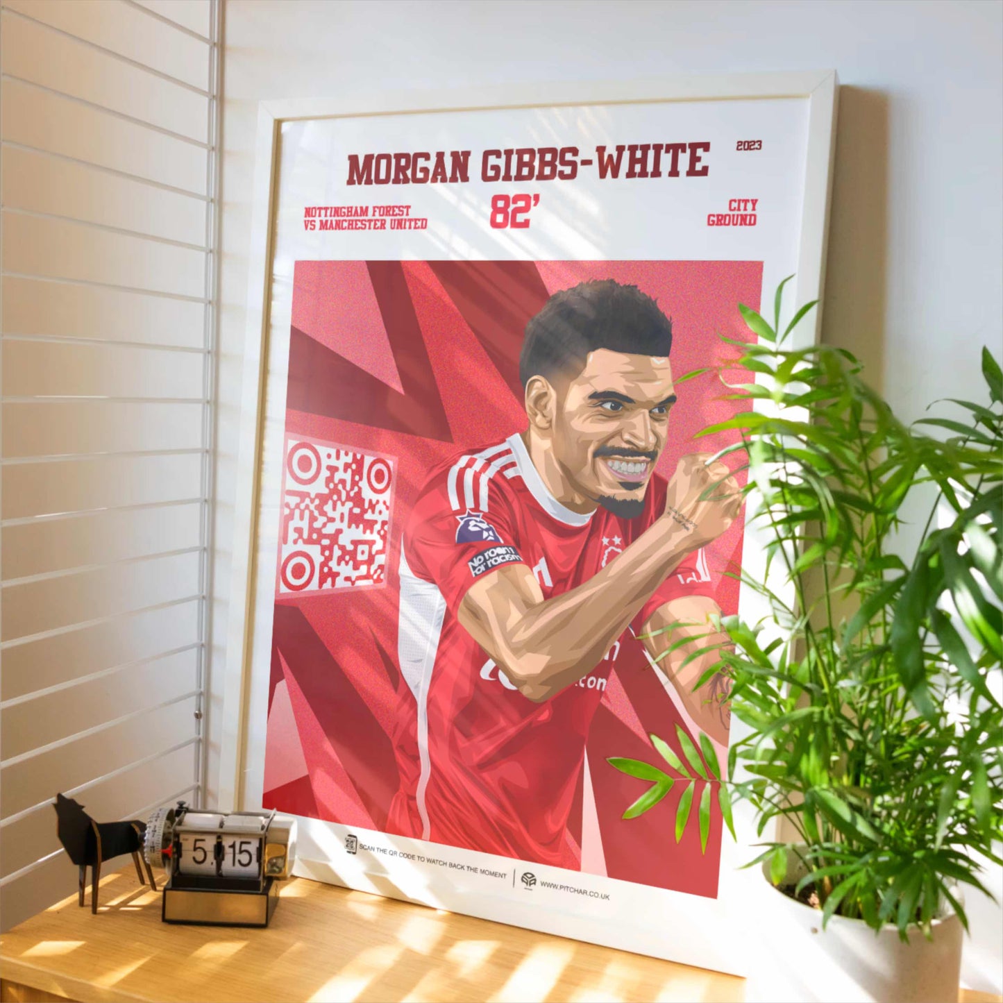 No frame is included. Just hold your phone camera up to the code. It’s the first football poster you can truly experience.