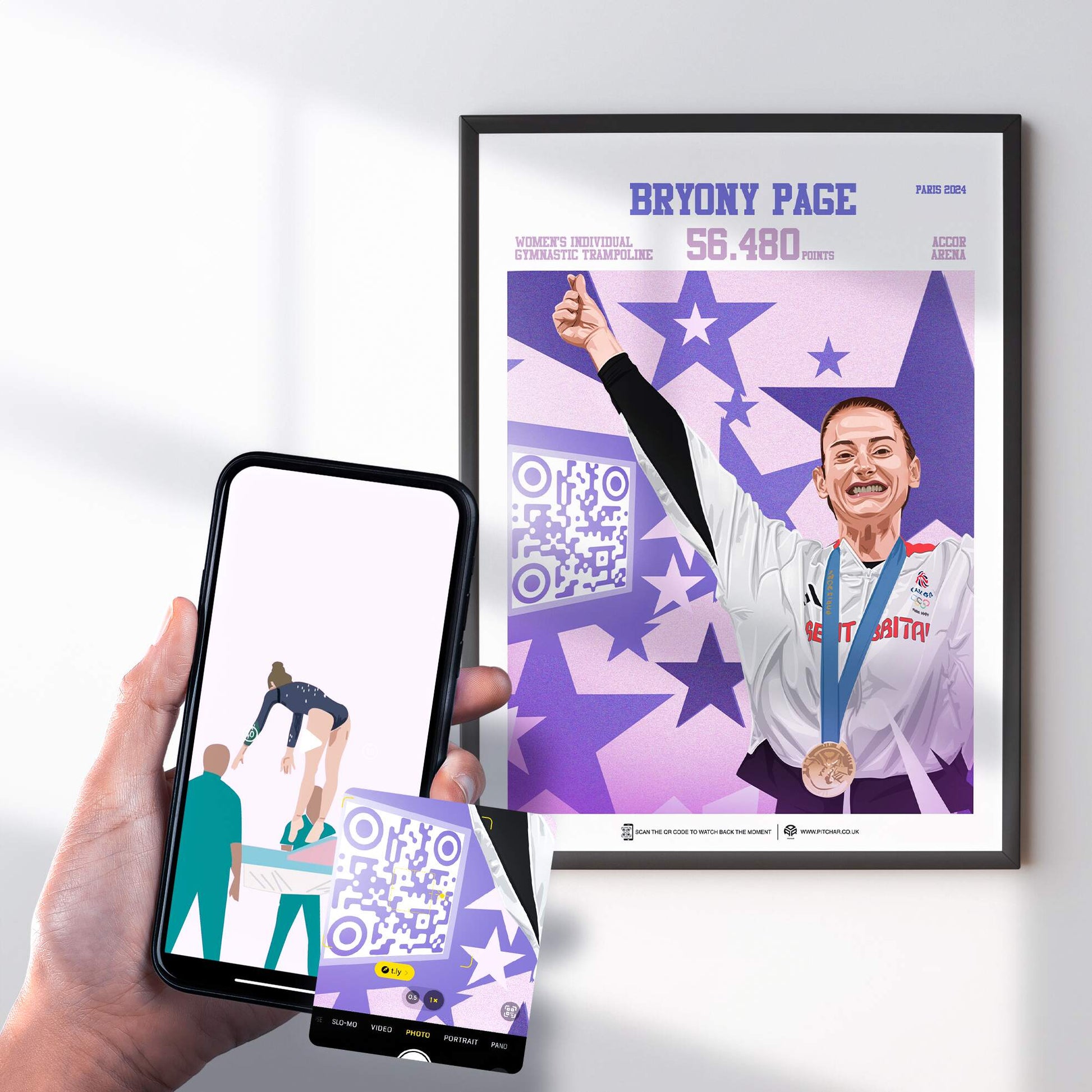 Scan this Team GB QR code poster to watch back an interactive video animation of this moment on 02/08/24 - Bryony Page (56.480 points)