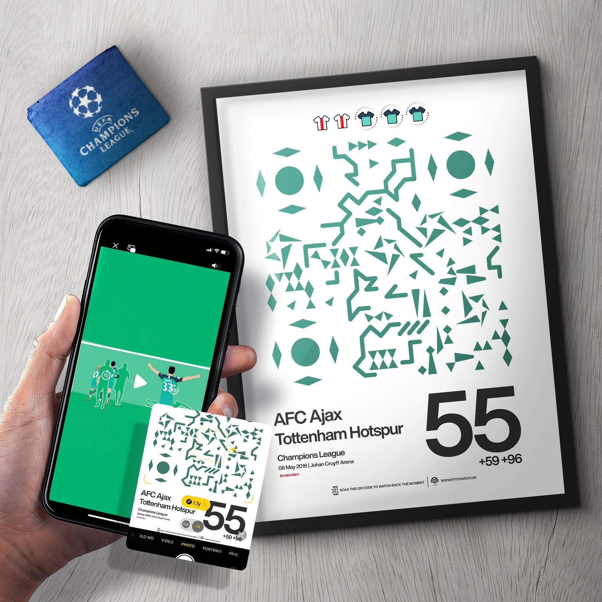 Tottenham poster with 20% Summer sale. Scan the QR code to watch a video replay of this goal. 14-day hassle-free returns. 100% Satisfaction guarantee. 5/5 highly rated. A4, A3, A2, A1, A0 available. Football Art Gift Boyfriend, Dad, Sister +