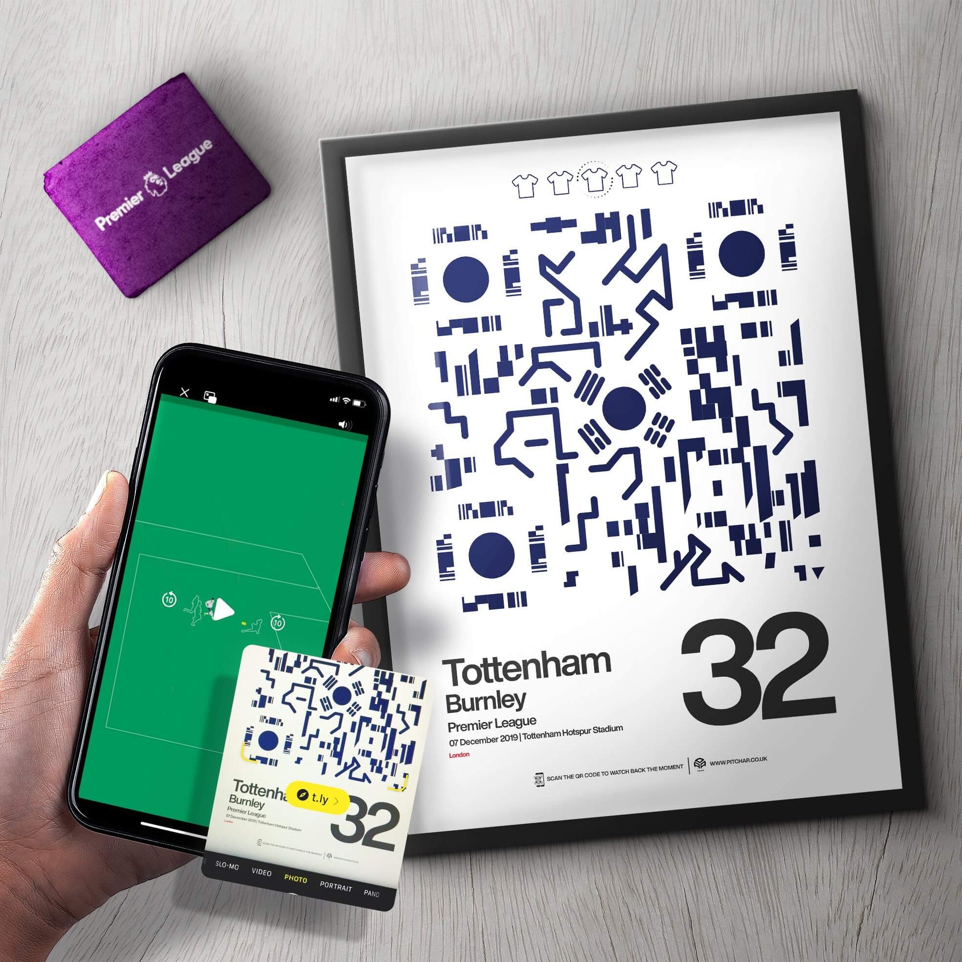 Tottenham poster with 20% Summer sale. Scan the QR code to watch a video replay of this goal. 14-day hassle-free returns. 100% Satisfaction guarantee. 5/5 highly rated. A4, A3, A2, A1, A0 available. Football Art Gift Boyfriend, Dad, Sister +